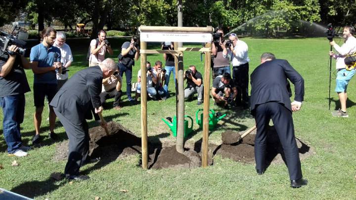 Elültették a mintegy három éve indult fővárosi fatelepítési program tízezredik és az országfásítási program első fáját kora délután a Margitszigeten. A fákat jelképesen Tarlós István főpolgármester és Nagy István agrárminiszter ültette el. Fotóink Vigh Alex felvételei.
