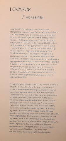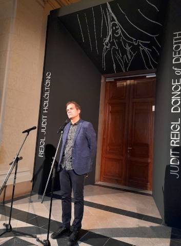 Vígh Annamária arra emlékeztetett, hogy Reigl Judit nyolc évtizeden át kivételes dinamizmussal dolgozott, élete utolsó éveiben, fizikai erejének csökkenésével azonban a festés helyett a rajz lett művészi kifejezése eszköze. Ekkor készült a Haláltánc című rajzciklus, amely ifjabb Hans Holbein azonos című 1526-os fametszet-sorozatának hagyományait követi, egyben Reigl saját haláltáncát is jelenti. – A művész úgy rajzolt, mintha naplót vezetne, mintha élettörténetét írná meg számunkra. Haláltánca többéves alkotói folyamat volt, melyben felidézte a félig megkopott vagy elfeledett, csak a lélek legmélyén megbúvó képeket – jegyezte meg a főigazgató-helyettes.