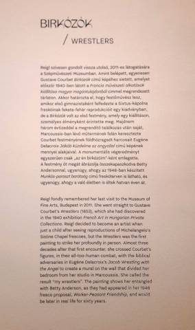 – Reigl Judit számára fiatalon a múzeum gyűjteményében látott alkotások jelentettek olyan inspirációt és igazodási pontokat, melyekhez később is folyton visszatért – mondta a tárlat délelőtti sajtóbemutatóján a múzeum főigazgató-helyettese. Elmondása szerint – a művész még életében megfogalmazott kérésének megfelelően – rajzai most együtt láthatók az azokat inspiráló művekkel, mások mellett Fra Angelico, Delacroix, Leonardo, Dürer, Gulácsy, Holbein és Courbet alkotásaival.