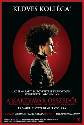 Rendező: Daniel Alfredson, forgatókönyvíró: Jonas Frykberg és Ulf Ryberg, zeneszerző: Jacob Groth, operatőr: Peter Mokrosinski. Szereplők: Noomi Rapace (Lisbeth Salander), Michael Nyqvist (Mikael Blomkvis), Lena Endre (Erika Berger), Annika Hallin (Annika Giannini), Jacob Ericksson (Christer Malm), Sofia Ledarp (Malin Erikson). Bemutató mától Dolby Digital hangminőségben a Budapest Film forgalmazásában.