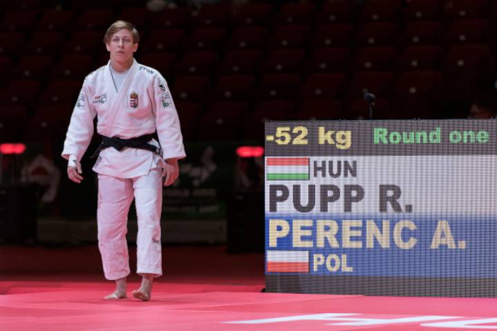 A világbajnokság 2. versenynapján egyetlen magyar versenyzőért szoríthattunk, az Atomerőmű SE Európa-bajnoki bronzérmese, Pupp Réka lépett tatamira az 52 kilogrammosok között. Az első ellenfele a lengyelek hatszoros IJF World Tour-érmese, a 31 esztendős Agata Perenc volt, a felek eddigi egyetlen párharcát Perenc nyerte, még 2018-ban, a taskenti Grand Prix-viadalon. A budapesti visszavágó remekül sikerült, pedig a lengyel judósnak a tokiói kvóta megszerzése érdekében létfontosságú lett volna a győzelem. A rendes küzdelmi idő végén Réka már két intéssel vezetett, s végül a 7. perc végén egy vazarival a győzelmet is kicsikarta. Nagy küzdelem volt!