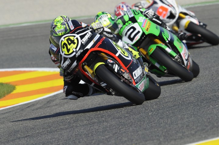 Spanyolország, Valencia ? Moto2 időmérő eredmény: 1. Toni Elias 1:36.141, 2. Stefan Bradl 1:36.247, 3. Andrea Iannone 1:36.255, 4. Scott Redding 1:36.343? 12. Talmácsi Gábor 1:36.885. ? Nem rossz ez a 12. hely, nem túl nagyok a különbségek az elején. Mindenki nagyon jó formában van az utolsó versenyen és nagyon motiváltak is vagyunk. A délelőtti edzésen valamivel kezelhetőbb volt a motorom, így visszatérünk majd azokhoz a beállításokhoz. Élvezem a motorozást, de kell még finomítani a gépen, hogy holnap egy jó versenyt tudjak produkálni. A gumi, az áttételezés rendben van, a hátsó geometrián kell még dolgoznunk. A célom mindenképpen az, hogy megtartsam összetettbeli 6. helyemet, de ez nem lesz egy egyszerű feladat, hiszen nyilván Bradl, Redding és Cluzel is szeretne 6. lenni ? nyilatkozta Gábor az idény utolsó versenye előtt.