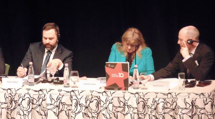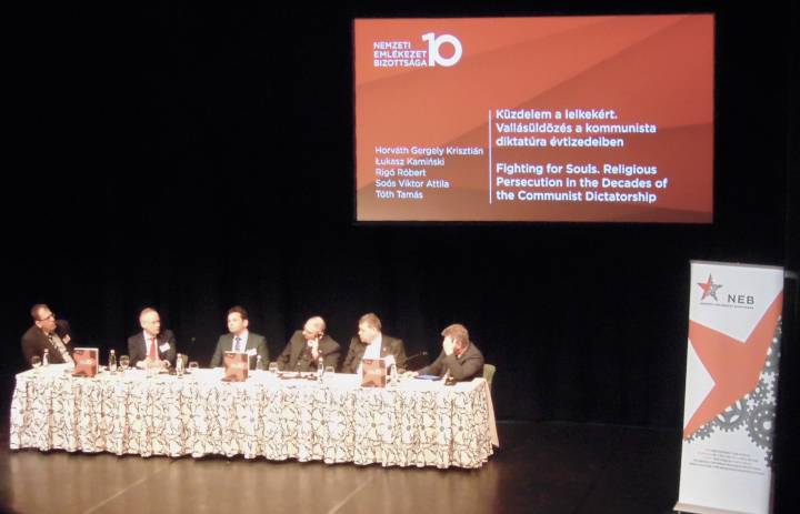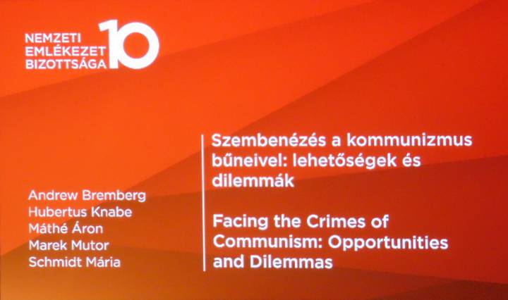 A magyar és angol nyelvű konferencián szinkrontolmács dolgozott. A két délelőtti egy-egy órás, félórás kávészünettel megszakított panelbeszélgetés címei: Szembenézés a kommunizmus bűneivel: Lehetőségek és dilemmák, majd Küzdelem a lelkekért. Vallásüldözés a kommunista diktatúra évtizedeiben voltak. Fotóink Egressy Rita felvételei.
