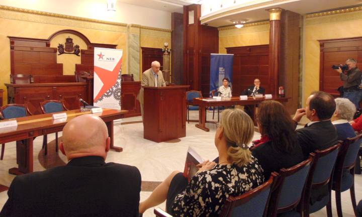 Zinner Tibor: Gyorstalpaló, elvtársaknak. A bírói és ügyészi akadémia, 1949-1954 című 768 oldalas kötetét mutatták be ma 13:30-tól a Markó utcai Kúria Dísztermében Fodor Endre NEB-sajtófőnök moderálásával. Fotóink Egressy Rita felvételei.