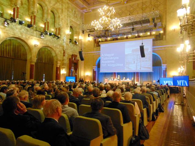 Nemzeti sorskérdés a hazai szellemi-tudományos erőforrások és a tudományos eredmények nemzeti érdekeknek megfelelő hasznosulása – hangsúlyozta az MTA elnöke a Magyar Tudományos Akadémia 197. közgyűlésén ma délelőtt a Pesti Vigadó I. emeleti Dísztermében. Fotóink Egressy Rita felvételei.