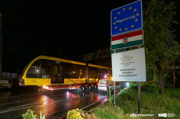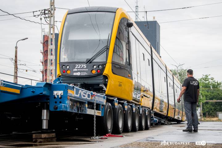Két új, modern CAF-villamossal bővült a budapesti flotta: a 2275-ös és 2277-es pályaszámú szerelvények a hét elején érkeztek meg a fővárosba. A járművek a spanyolországi gyártóüzemből indulva, közúti és tengeri szállítással jutottak el Budapestre, éjszakánként több ezer kilométeres út után gördültek be majdani otthonukba. A villamosok észak felől érkeztek: a szerelvényeket szállító hatalmas trélerek Parassapusztánál lépték át a magyar-szlovák határt, majd a börzsönyi lejtőkön és a Dunával párhuzamosan haladva érkeztek meg Budapestre.