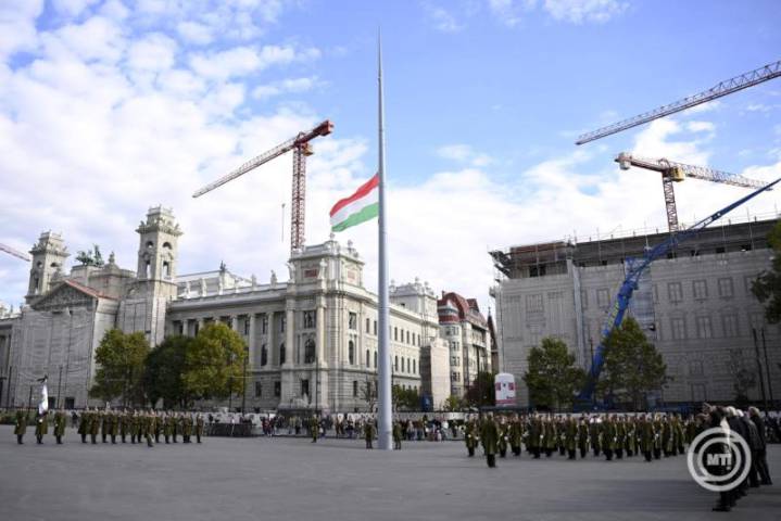 A Kossuth téri sortűz áldozatairól emlékeztek meg ma Budapesten. Félárbócra engedték a nemzeti lobogót az Országház előtti Kossuth téren – derült ki a híradásokból. Fotóink MTI/Bodnár Boglárka felvételei.