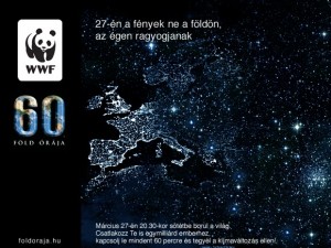 Idén a Föld Órája alkalmából a WWF Magyarország arra kér mindenkit, hogy mutassuk meg, hogy a Föld a magyaroknak is fontos, és március 26-án, szombaton, este 20:30-kor kapcsoljuk le a világítást egy órára, hogy így ünnepeljük bolygónkat ? együtt a világgal! Emellett, a Föld Óráján túl, az év többi napján is tegyünk a környezetért!