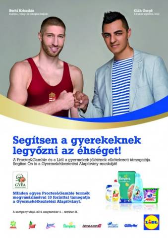 A Lidl és a P&G közös társadalmi felelősségvállalási kampánya keretében azok a vásárlók, akik a Lidl üzleteiben P&G termékeket ? többek között Ariel, Lenor, Jar és Head&Shoulders márkákat ? vásárolnak, támogatják a Gyermekétkeztetési Alapítvány céljait és segítenek a rászoruló gyermekeknek legyőzni az éhséget. Hazai és nemzetközi felmérések szerint ma Magyarországon közel húszezer gyermek éhezik. A Gyermekétkeztetési Alapítvány 1993-as alapítása óta azért dolgozik, hogy hazánkban a legszegényebb körülmények között élő gyermekek rendszeresen megfelelő és elegendő táplálékhoz jussanak.