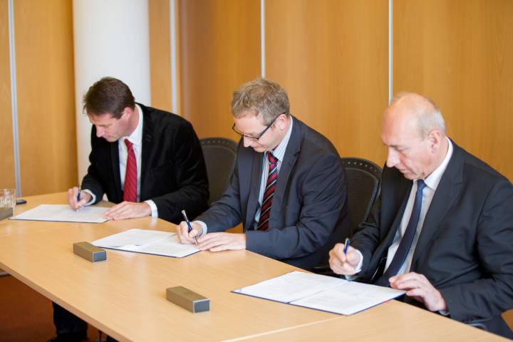 Együttműködés a biztonságos repülésért: Budapesten együttműködési megállapodást írt alá Zsolnay Tamás, a HungaroControl Magyar Légiforgalmi Zrt. vállalatfejlesztési és külkapcsolati igazgatója, Hangyál Gyula, a HungaroControl ATM légiforgalmi igazgatója és Diederik Pen, a Wizz Air Hungary Kft. üzemeltetési igazgatója.