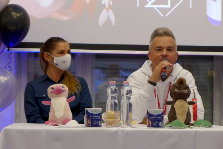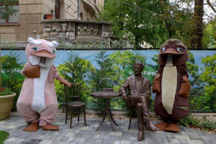 Platypus: A FinLit Story. Galaktikus hajsza a pénz nyomában. Cash és Flow, a két kacsacsőrű emlős tanítják pénzügyekre a fiatalokat egy új, ingyenes, magyar fejlesztésű mobilos játékban – tudtuk meg délelőtt a Benczúr utcai sajtóbemutatón. Fotóink Lantai József felvételei.