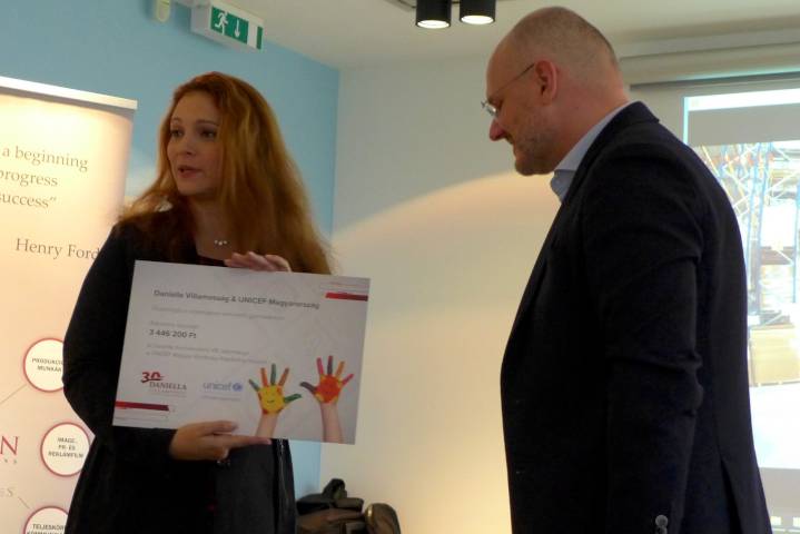 Aki nem hisz abban, hogy mennyi jó ember van, az kezdjen el valami jót tenni, és meglátja, milyen sokan odaállnak mellé! – idézte Fehér Gina moderátor Böjte Csaba gondolatát. A sikeres vállalatok egyre több figyelmet fordítanak a munkavállalók jólétére, mivel a gazdasági változások kihatnak a dolgozók munkahelyi és szociális körülményeire. A Daniella Villamosság a nehéz gazdasági helyzetben a magyar nagyvállalatok között szinte egyedülálló módon, anyagi hozzájárulással is segíti munkatársait. Az idén 30 éves nagyvállalat ott segít, ahol tud. A munkavállalói elégedettség elérése mellett a cég életében fontos szerepet játszik a jótékonykodás is. A legutóbbi – az UNICEF Magyarországgal közösen szervezett – adománygyűjtő akció során 3.446.200 forinttámogatást sikerült összegyűjteni a rászoruló és szükségben szenvedő gyerekek számára.