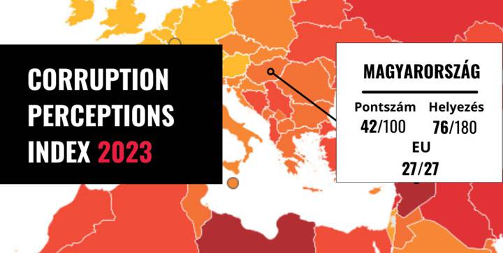 A Transparency International Berlinben működő Titkársága 29. alkalommal készítette el az államokat a közszektort érintő korrupcióval szembeni védettségük szerint rangsoroló Korrupció Érzékelési Indexet (Corruption Perceptions Index – CPI). Magyarország 2023-ban 42 pontot szerzett a 0 ponttól (a leginkább korrupt ország) 100 pontig (a korrupcióval legkevésbé fertőzött ország) terjedő skálán. Ezzel a 180 országot rangsoroló felmérésben 2022-es pontszámának megőrzése mellett, egy helyet javítva, a lista 76. helyén végzett.