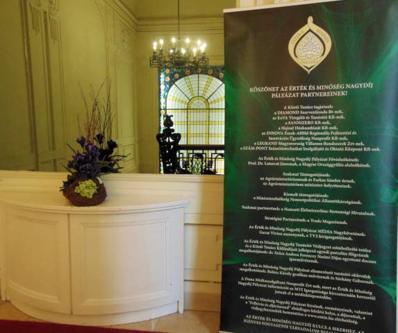 Az Érték és Minőség Nagydíj Pályázatot idén 7. alkalommal írta ki és valósította meg a DIAMOND Szervezőiroda Bt., az ExVA Vizsgáló és Tanúsító Kft., a FANNIZERO Kft., a Hajnal Húskombinát Kft., az INNOVA Észak-Alföld Regionális Fejlesztési és Innovációs Ügynökség Nonprofit Kft., a LEGRAND Magyarország Villamos Rendszerek Zrt. és a SZÁM-PONT Számítástechnikai Szolgáltató és Oktató Központ Kft., mint a pályázati rendszer Kiírói Tanácsa. Az Érték és Minőség Nagydíj Pályázat fővédnöke: dr. Latorcai János, az Országgyűlés alelnöke. A pályázati rendszer szakmai támogatója az Agrárminisztérium, kiemelt támogatója a Miniszterelnökség Nemzetpolitikáért Felelős Államtitkársága, szakmai partnere a Nemzeti Élelmiszerlánc-biztonsági Hivatal (NÉBIH).