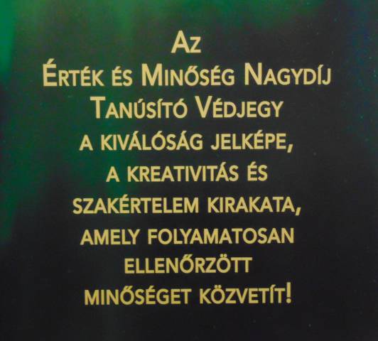 Az Érték és Minőség Nagydíj Tanúsító Védjegy olyan kiemelkedő eredményekre és teljesítményekre fókuszál, ahol a vállalkozás stratégiájának nemcsak a versenyképesség, hanem a környezetvédelem is fontos részét képezi. Azokat díjazza, akik kisebb, kevesebb környezetterheléssel képesek minőséget előállítani úgy, hogy közben nagyobb fogyasztói elégedettséget képesek elérni.