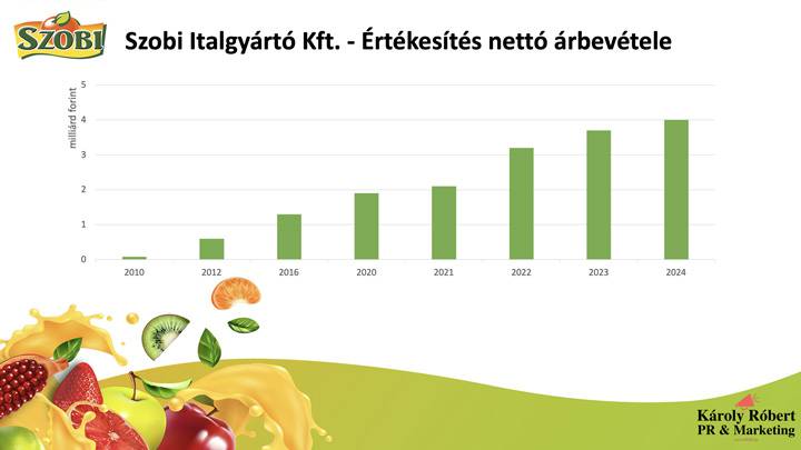 – A Szobi Italgyártó Kft. 2009-ben alakult meg, ennek köszönhetően ma is kaphatóak a Szobi termékei. A cég küldetése jól látható: a márkanévhez hű, egészséges, minőségi zöldség- és gyümölcslevelek, szörpök, valamint üdítőitalok gyártása – hangsúlyozta Vitályos Eszter hozzátéve: ma újabb fénykorát éli a magyarok által kedvelt márka.