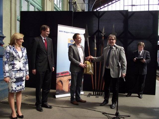 Az ünnepélyes avatásra Budapest-Nyugati pályaudvaron került sor ma délelőtt. A Királyi Váróban Dr. Völner Pál államtitkárral, Dávid Ilona elnök-vezérigazgatóval, T. Hámori Ferenc kiadóvezetővel és Helyei László színművésszel ? a népszerű Mesék Mátyás királyról című rajzfilmsorozat narrátorával ? vártuk a királyi mozdony beérkezését a szomszédos 10. vágányra, ahová Schandl Lóránt zeneszerző Visegrádi Palotajátékokra készített művére gurult be a jármű. ? Felség, valóban koronád legszebb gyémántja jön! ? mondhattuk volna Arany János után szabadon.