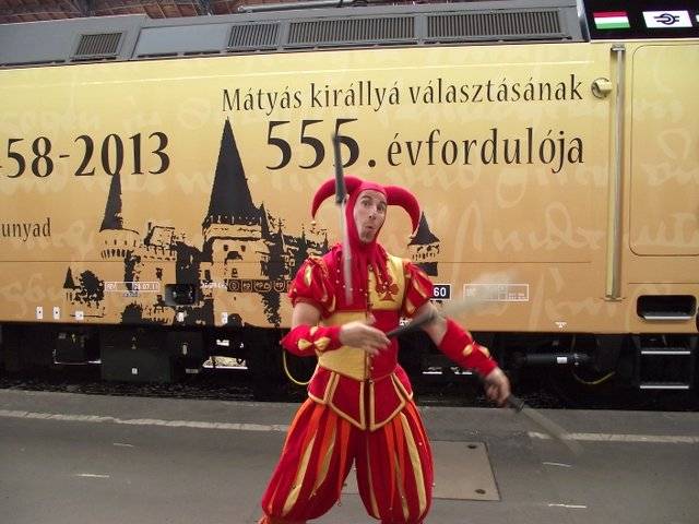 Mátyás király magyar hangja várta a Mátyás Király Mozdonyt. Bemutatkozott, s még ma országjáró útra indult a MÁV Csoport díszes Mátyás Király Mozdonya. A vasúttársaság Hunyadi Mátyás 555 évvel ezelőtti királlyá választása előtt tiszteleg az arany-fekete színekben felmatricázott járművel, amely holnaptól Romániában is megfordul majd. Fotóink Lantai József felvételei.