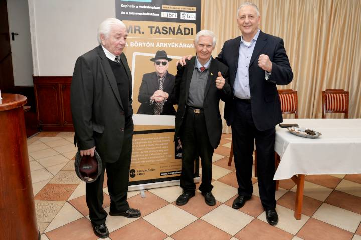 Tasnádi Péter 74. szülinapját 5. könyvének sajtó-nyilvános bemutatójával ünnepelte ma 16 órától az óbudai Rozmaring Étterem I. emeletén, ahol Mr. Tasnádi – A börtön árnyékában című önéletrajzi könyvéről Tóth Gergellyel egy órán át beszélgetett. Sokat mesélt, a moderátornak alig kellett közbe szólnia. Az előzmények idekattintva olvashatók.