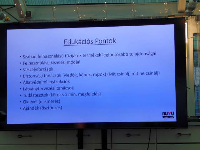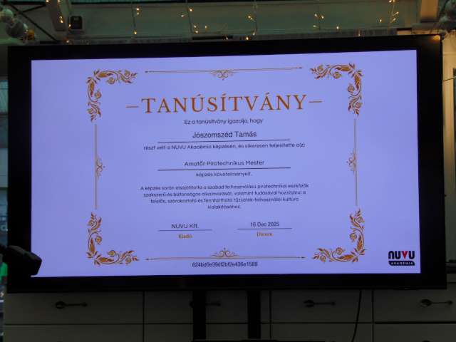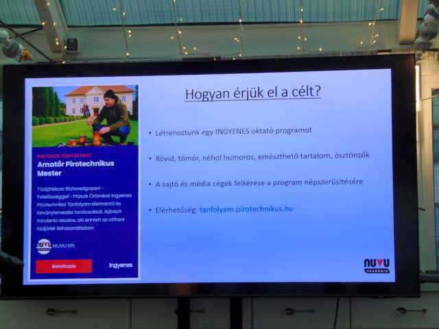 – Úgy látjuk, hogy fontos lenne növelni a társadalmi csoportok tájékozottságát a pirotechnikai eszközökkel kapcsolatban, mert a zéró tolerancia és a túlzó korlátozás nem vezet sehová, az edukáció növelése érdekében cégünk elindította az ingyenesen elérhető, amatőr pirotechikus mester tanfolyamot, amit bárki könnyedén, mindössze 90 perc alatt elvégezhet – világított rá a Nuvu ügyvezetője.