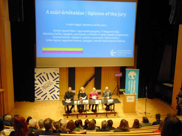 – Az elmúlt két év megmutatta, hogy a NER nemcsak keményedik, de ezzel párhuzamosan hanyatlik is – jelentette ki köszöntőjében a Transparency International Magyarország ügyvezető igazgatója. Martin József Péter hozzátette: az idei választásokon reális esély nyílik arra, hogy az Orbán-rendszer megbukjon, és Magyarországon helyre lehessen állítani a demokráciát és a jogállamiságot, és meg lehessen törni a rendszerszintű korrupciót. Ha így lesz, az a megmaradt független médiának is köszönhető!