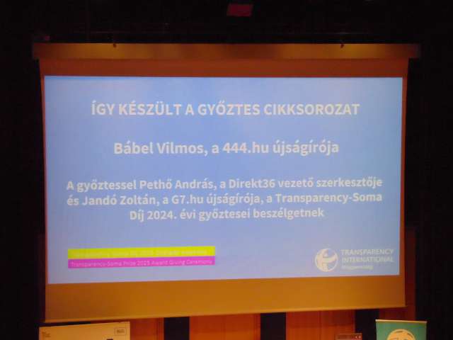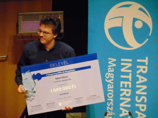 A Transparency-Soma Díj zsűrije idén a 444.hu újságírójának munkáját ismerte el a Transparency-Soma Díj odaítélésével. A pályázatok elbírálásának ezúttal is három fő kritériuma volt: az oknyomozó munka mennyisége és minősége, a téma relevanciája, továbbá a közérthetőség. A pályázati felhívásra idén összesen 33 pályamunka érkezett.