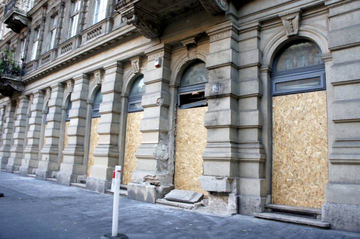 Ma reggelre elindult a villamos a Nagykörúton és az épülethez is közel mehettem. Lantai József is fotózhatott. A romokat, üvegszilánkokat két közterület-fenntartó takarította, közelükben két közterület-felügyelő posztolt. A négyemeletes épület földszinti kirakatai és az I-II. emeleti ablakai kitörtek. Alig járt valaki a máskor oly forgalmas járdaszakaszon, s egyenruhás rendőröket sem láttam a közelben. Remélhetőleg azok sem bátorodtak el, akik most fontolgatják, hogy a rendőri pályát választják élethivatásul!