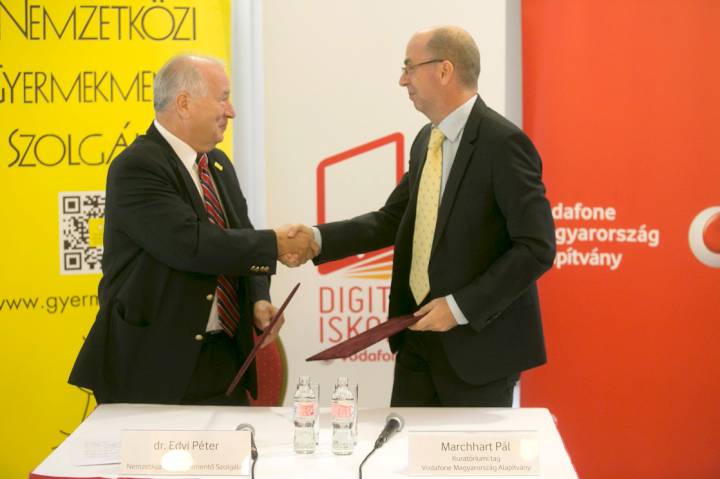 ? A Nemzetközi Gyermekmentő Szolgálat a Safer Internet Programban tudatosságnövelő központként számos eszközzel hívja fel a társadalom figyelmét a biztonságos internethasználat fontosságára. Szakembereink, oktatóink, trénereink ingyenes előadásokat, foglalkozásokat tartanak diákok, tanárok, szülők számára az egész országban. A 2009 óta futó programban évente legkevesebb harmincezer gyerekhez, húszezer szülőhöz, pedagógushoz és egyéb szakemberhez jutnak el oktatóink. Megszerzett tudásunkat, tapasztalatainkat szívesen osztjuk meg más, a témát kiemelten kezelő szervezetekkel is. Így örömmel fogadtuk a Vodafone Magyarország Alapítvány megkeresését, amely a Digitális Iskola Programhoz keresett szakembereket. A mai napon aláírt együttműködés egy közös gondolkodás eredményeként az ország egész területén, hátrányos helyzetű térségekben működő iskolákhoz juttatja el a XXI. század online ismereteit a digitális esélyegyenlőség jegyében. Öröm számunkra, hogy csatlakozhatunk ehhez a programhoz, amelynek első lépcsőjeként az általunk évente oktatott harmincezer diákon túl, további 6500 diákhoz jutnak el a biztonságos internetezés legfontosabb ismeretei ? tette hozzá dr. Edvi Péter, az NGYSZ elnöke.