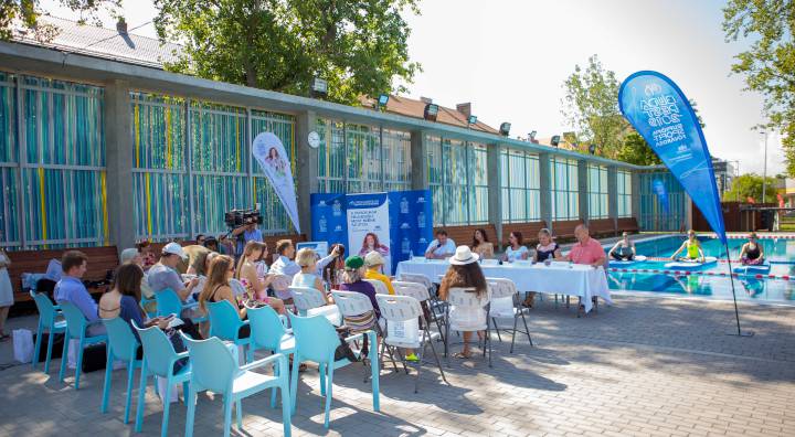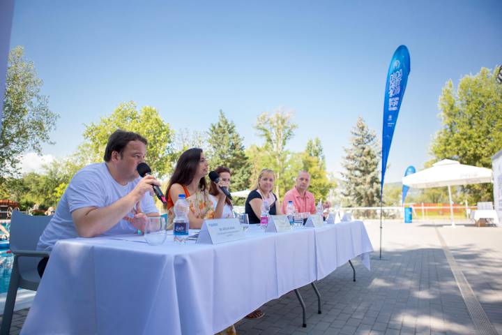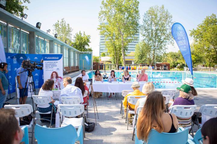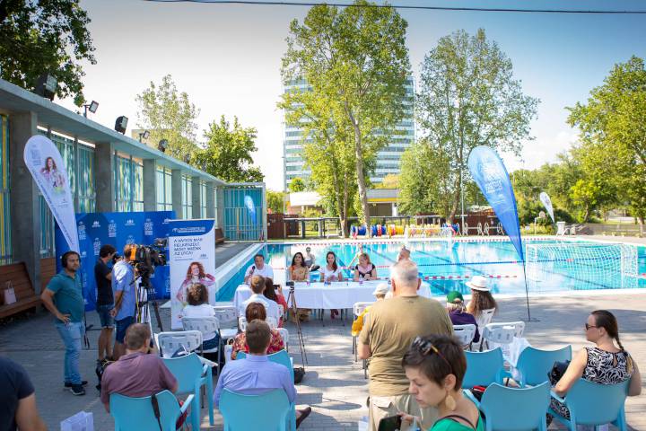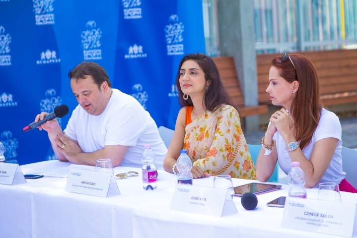 A félidejéhez érkezett Budapest 2019 Európa Sport-fővárosa évad nagyszabású nyári eseményének, a Jógázz a Citadellán alkonyattól pirkadatig című programnak beharangozó sajtóreggelijén voltunk délelőtt a Népfürdő utcai Dagály Fürdőben. Fotóink Toroczkai Zsolt felvételei.