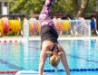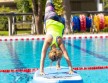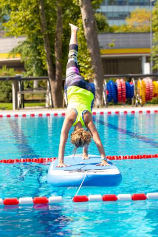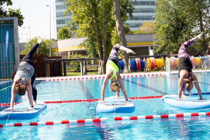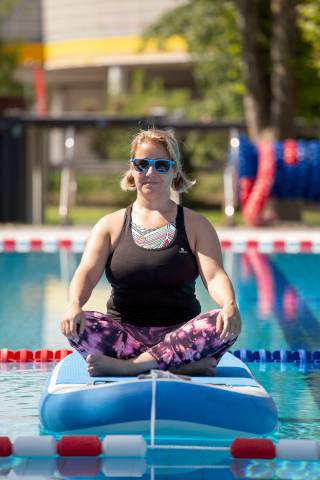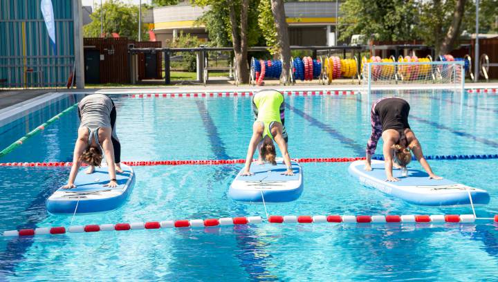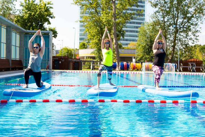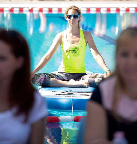 Megtudtuk az augusztus 2. hétvégéjére tervezett program részleteit. 10-én szombaton 17-től 23 óráig hatszor 50 perces időszakokban jógázhatunk, közte 10 perces szünetekkel. Némi alvásidőt követően 11-én vasárnap 04:30-tól 06 óráig Napüdvözlő jója lesz, így nagy kezdőbetűvel, mellyel a kelő Napot, az életet adó Istenséget köszönthetjük. Mivel a jógázók létszáma limitált, érdemes már most regisztrálni az esemény Facebook-oldalán. S hogy lássuk is, két hét múlva mire számíthatunk, rögvest SUP jóga bemutatót tartott két társával Rubesch Linda SUP- és óceán jógaoktató, majd az egyes gyakorlatokat a bátrabb sajtómunkások is kipróbálhatták a medence vizén lágyan ringó szörfökön.