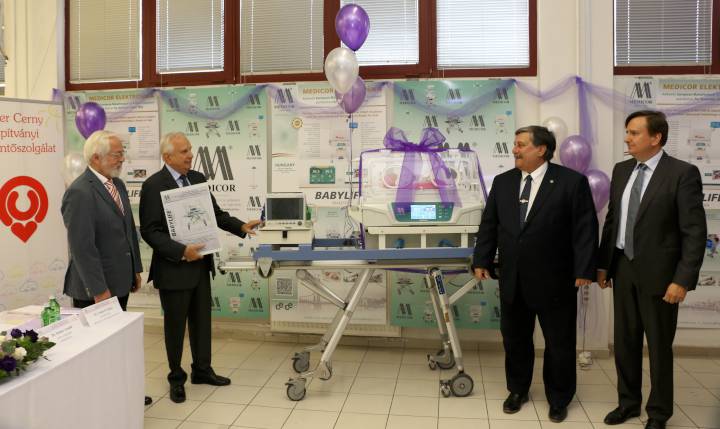 MEDICOR a Peter CernynekA MEDICOR Elektronika Zrt. nevében dr. Steiner Arnold elnök-vezérigazgató és Steiner András Arnold vezérigazgató-helyettes ünnepélyes keretek között átadta a MEDICOR? BabyLife? márkajelű szállító inkubátort Keresztes Györgynek, a Peter Cerny Alapítvány kuratóriumi elnökének és dr. Somogyvári Zsoltnak, az Alapítvány szakmai vezetőjének.