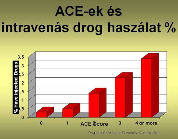 A magyar eredmények is azt mutatták, hogy a szenvedélybetegek szignifikánsan több negatív gyermekkori élményt éltek át, nem szenvedélybeteg társaikhoz képest. A vizsgálatok során összefüggést találtak a negatív gyermekkori élmények és a szorongás, a depresszió, valamint az élettel való elégedettség és önértékelés alacsony szintjei között is. Figyelemre méltó, hogy az esélyhányadosokat vizsgálva kiderült, hogy Magyarországon: