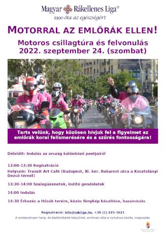 Már 37 éve minden év októbere a Mellrák elleni küzdelem hónapja (Breast Cancer Awareness Month), október elseje pedig a Mellrák Elleni Küzdelem Világnapja. Ennek alkalmából a Magyar Rákellenes Liga idén 6. alkalommal rendezi meg a rózsaszín motoros csillagtúrát és felvonulást.