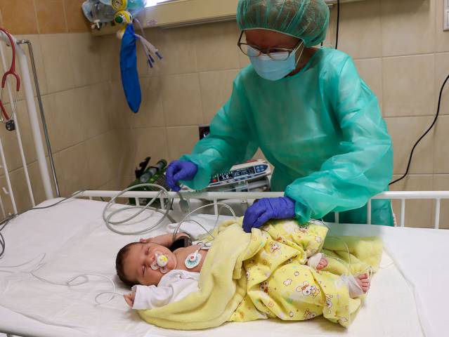 Dórika az első kiszűrt SMA-s gyermek. Múlt hét pénteken megtörtént az első újszülött korban kiszűrt csecsemő génterápiás kezelése a Magyarországi Református Egyház Bethesda Gyermekkórházában – tudatta Tamásné Bese Dóra társadalmi kapcsolatokért és kommunikációért felelős igazgató. Fotóink a gyermekkórház felvételei.