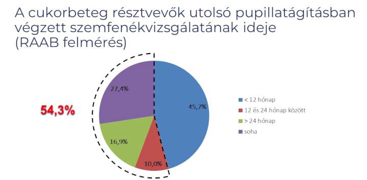 Cukorbetegséggel élőknél a vakság kockázata tízszeres, ezért minden kezelési protokoll számukra legalább évenkénti szemvizsgálatot ír elő, mivel a szemkárosodás gyakran csak akkor válik nyilvánvalóvá, amikor már súlyos, előrehaladott látásromlás alakul ki. Ehhez képest a hazai Elkerülhető Vakság Gyors Felmérése (Rapid Assessment of Avoidable Blindness; RAAB) vizsgálat tanulságai szerint ez kevesebb mint a cukorbetegek felénél valósul csak meg.