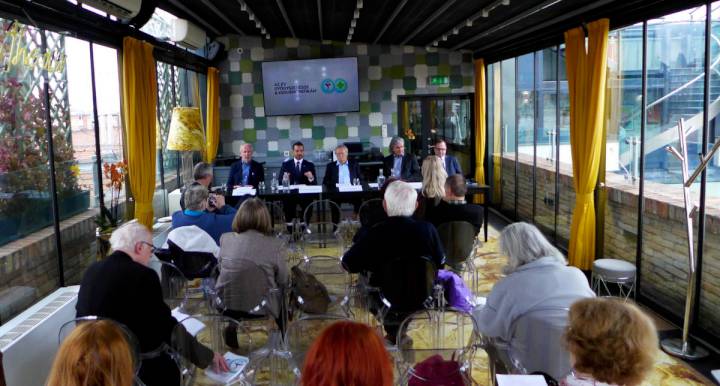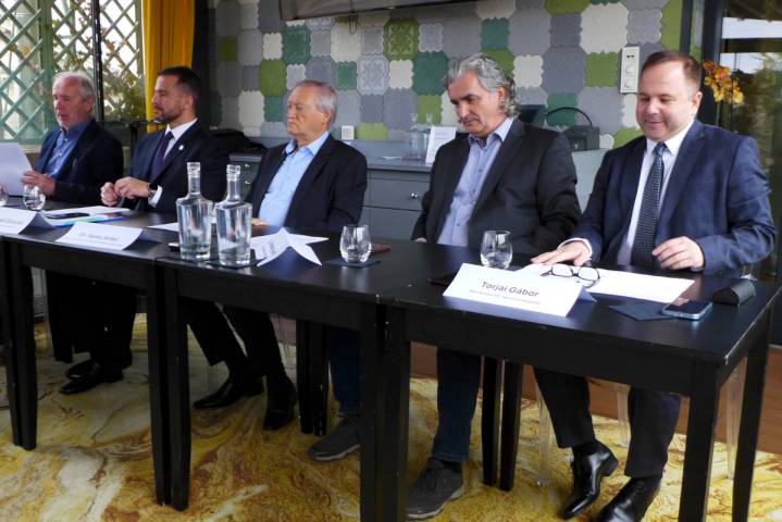 A sajtótájékoztató résztvevői: dr. Mikola Bálint, a Magángyógyszerészek Országos Szövetségének alapító elnöke; dr. El Koulali Zakariás, a Magyar Gyógyszerésztudományi Társaság alelnöke; dr. Samu Antal, a Gyógyszerészi Gondozás Szakmai Bizottságának alapító elnöke; dr. Hodossy Lajos, a Roche Magyarország Kft. ügyvezető igazgatója és moderátorként Torjai Gábor, a Nero Solution Kft. ügyvezető igazgatója voltak.