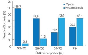 A rövidlátók és a túllátók aránya a lakosság különböző életkori csoportjaiban Magyarországon a 2014?2019 közötti időszakban a fenti ábránkon látható. Ma már biztosan tudjuk, hogy a myopia kialakulása és romlása a szem növekedését befolyásoló vizuális/környezeti körülmények és genetikai tényezők összetett kölcsönhatásának eredménye, a rövidlátás a látási körülményekhez való alkalmazkodásként alakulhat ki!
