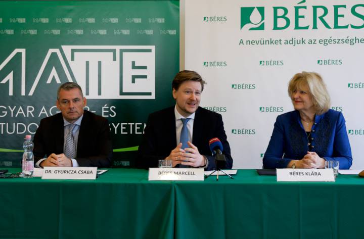 Stratégiai együttműködést kötött a MATE a Béressel. Dr. Gyuricza Csaba, a Magyar Agrár- és Élettudományi Egyetem rektora, Béres Marcell, a Béres Gyógyszergyár elnöke és Béres Klára, a Béres Alapítvány elnöke látták el kézjegyükkel azt az együttműködési megállapodást, amely keretet ad a MATE és Béres együttes részvételével kezdődő közös munkának.