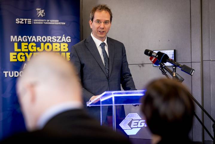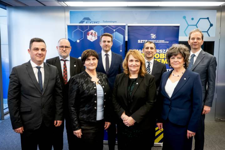Az SZTE?Egis Ipari Partnerségi Tanszék alapításának ünnepélyes aláírásán részt vett Bódis László, a KIM innovációért felelős helyettes államtitkára, a Nemzeti Innovációs Ügynökség vezérigazgatója is. – A felsőoktatási intézményeknek az oktatás és a felfedező kutatás mellett van már egy harmadik missziójuk is: a piaccal, a gazdasággal és a társadalommal való szoros kapcsolat kialakítása. A Nemzeti Innovációs Ügynökség stratégiai célja, hogy hatékonyan támogassa az egyetemeket e harmadik missziónak a sikerre vitelében – emelte ki beszédében.