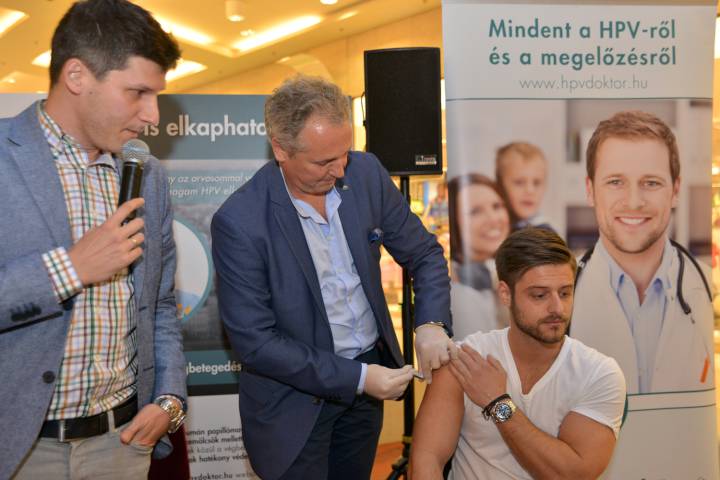 Négy év alatt több mint 60%-kal emelkedett a szájrákkal diagnosztizáltak száma az Egyesült Államokban, Magyarországon pedig évente csaknem 4500 új fej-nyaki daganatos megbetegedést regisztrálnak ? tudtuk meg délelőtt a Corvin Plazában, ahol Baronits Gábor és Jabin Péter is beoltatta magát.