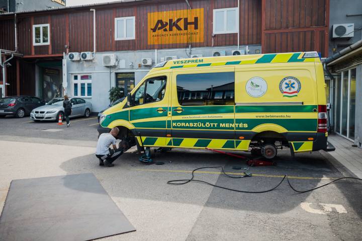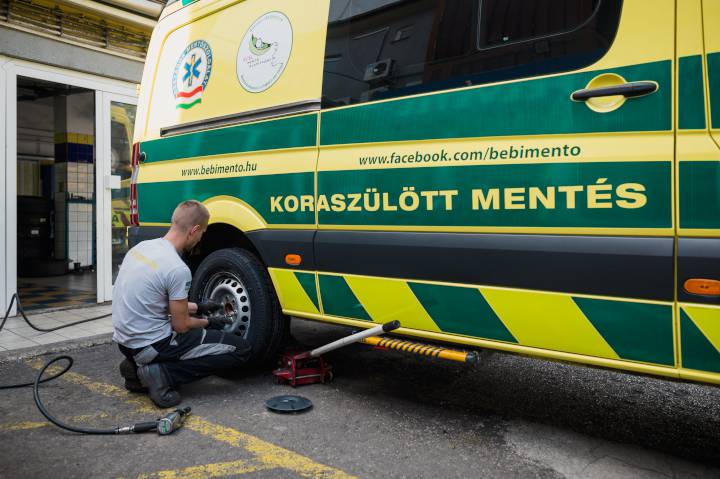 Koraszülött mentőknek adományozott nyári gumikat az Abroncs Kereskedőház. Hét mentőautóra szerelték fel azokat a nyári gumikat, amelyeket ők adományoztak a Magyar Koraszülött és Újszülött Mentő Alapítvány számára ? tudatta Szellő Gábor, KRQ Communications. Fotóink Orbán Domokos felvételei.
