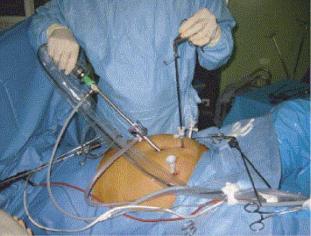 A laparoszkópiás beavatkozásokat altatásban végzik, majd annak érdekében, hogy elegendő hely álljon rendelkezésre, a műtét során a hasüreget egy tű segítségével széndioxid (CO2) gázzal töltik fel. Erre azért van szükség, hogy egy speciális kamera könnyedén mozgatható legyen a hasüregben anélkül, hogy megsértené ezzel valamelyik szervet. A kamera képét monitorokra vetítik, az orvosok ennek segítségével tájékozódnak és operálnak. A többi eszköz (ollók, fogók, égető-vágó eszközök, szívó-öblítő eszközök) bevezetéséhez szükséges vágások számát és helyeit a műtét típusa és a beteg állapota határozza meg. Ezek bevezetéséhez általában 5-10 mm-es nyílásokra van szükség.