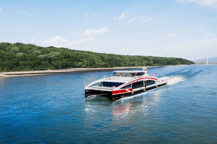 Twin City Liner Robert Kovacs felvételénBudapestre jön a bécsi katamarán, a Twin City Liner. Kísérleti jelleggel Budapestig hajózik le novemberben az egyébként Bécs és Pozsony között közlekedő katamarán, a Twin City Liner. Ha a próbaút sikeres lesz, a jövőben gyakrabban érkezhetnek hajón bécsiek a magyar fővárosba.