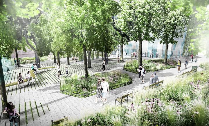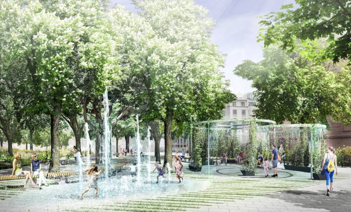 Bécs első hűsölő parkját két éven át tudományosan is tanulmányozzák: értékelik és tovább finomítják a hűsítő intézkedéseket és folyamatos lesz a tapasztalatcsere a kutatói szint és a gyakorlati megvalósítás között. Carla Lo fotóin Bécs első hűsölő parkjának látványtervei vannak.