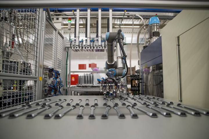 A cseh 2K Trend, ami nagy pontosságú fröccsöntött műanyag alkatrészeket gyárt nagy autógyártók számára, bevezette a UR10 kobotot a teljes gyártási ciklus kezelésére, amivel optimalizálta a gyártást és megoldotta a munkaerőhiány problémáját is. Az UR10 együttműködő robot felveszi és a formába helyezi a műanyag pelletet, majd megkezdi a fröccsöntési ciklust. A ciklus végén a kobot eltávolítja a kész öntvényeket, amelyeket aztán a szállítószalagra helyez. Ez egy monoton tevékenység, amely kivételes pontosságot igényel a kész műanyag öntvények kezelésében, tehát tökéletes a robotizáláshoz. Az UR10 kobot gyakorlatilag önállóan képes kezelni az egész gépet, ezért nem szükséges emberi dolgozók bevonása ebbe a folyamatba. Előnye a UR10 kar széles működési tartománya is, amely ezáltal a teljes gépet nagyon hatékonyan működteti.