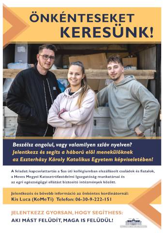 Az Ukrajna területéről menekülő hallgatóknak több szakot érintően is lehetőségük van arra, hogy bekapcsolódjanak az Eszterházy Károly Katolikus Egyetemen zajló jelenléti oktatásba vendéghallgatóként. Az Ungvári Nemzeti Egyetem két résztanulmányokra érkezett hallgatóját Erasmus ösztöndíjjal is támogatjuk. Szintén fogadtuk a beregszászi II. Rákóczi Ferenc Kárpátaljai Magyar Főiskola több diákját is, ők a Leányka úti kollégiumban kaptak szállást és a félév végéig ösztöndíjban részesülnek a Makovecz Program keretében.