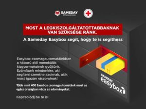 Easybox csomagautomatáival segíti az Ukrajnából menekülőket a Sameday. Magyarország legnagyobb csomagautomata-hálózatával rendelkező vállalata, az Easyboxokat üzemeltető Sameday több mint 400 automatájának segítségével gyűjt adományokat az Ukrajnából menekülők kisgyermekei számára.