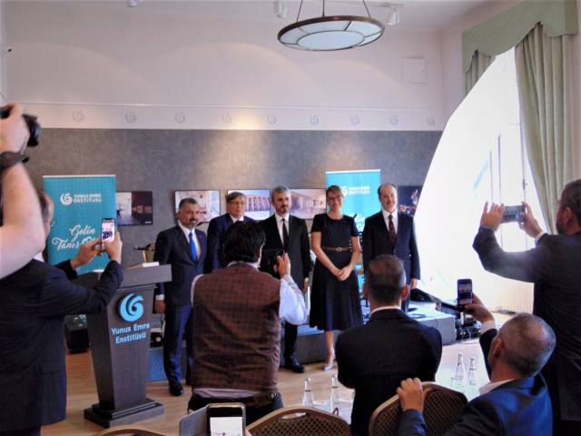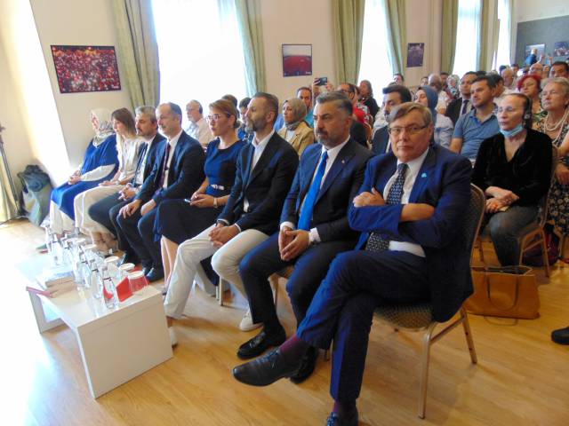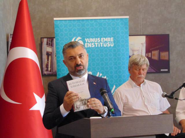 A Budapesti Yunus Emre Török Kulturális Intézet a július 15-ei Demokrácia és a Nemzeti összetartozás napja alkalmából ma délben mutatta be Hüseyin Aydin: Az évszázad éjszakája című magyarul is kiadott 436 oldalas könyvét az Andrássy út 62-ben. Fotóink Egressy Rita felvételei.