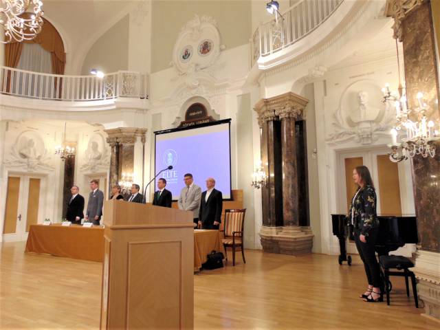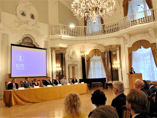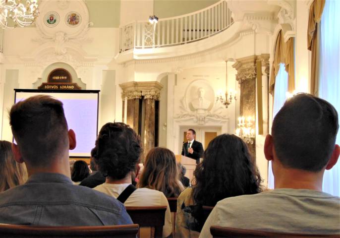 Az I. emeleti Aula Magna-beli rendezvényen a hallgatókat Menczer Tamás, a KKM kétoldalú kapcsolatokért felelős államtitkára, Varga-Bajusz Veronika, a KIM felsőoktatásért felelős helyettes államtitkára és Hamar Imre, az ELTE nemzetközi ügyekért felelős rektorhelyettese köszöntötte. A plenáris előadást Botzheim János, az ELTE IK Mesterséges Intelligencia Tanszék egyetemi docense tartotta Korszerű mesterséges intelligencia technológiák címmel.