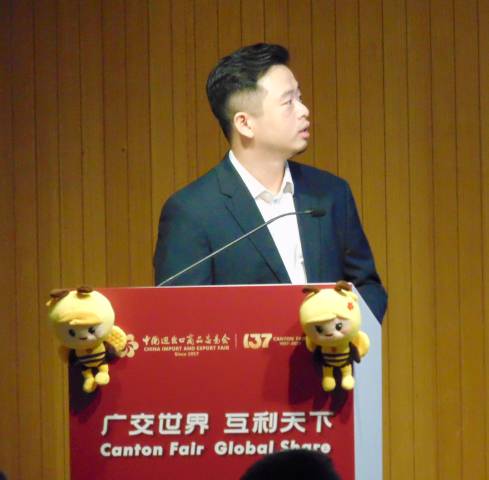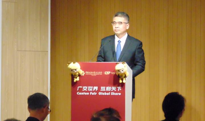 Liu Xiaomi, a China Foreign Trade Center kiállítási igazgatója a Canton Fair szervezőjeként videón mutatta be a 137. Kantoni Vásárt;